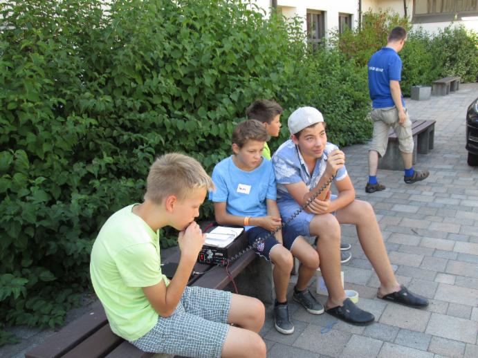 Bild 2: Mit dem Ausbildungsrufzeichen DN1JET sammelten die Teilnehmer vom Schulhof in Jetzendorf im Rahmen des Ferienprogramms selbst erste Erfahrungen mit dem Amateurfunk. Mit einfachen Antennen und einem Autofunkgerät kam es zu Funkverbindungen bis nach Österreich.
